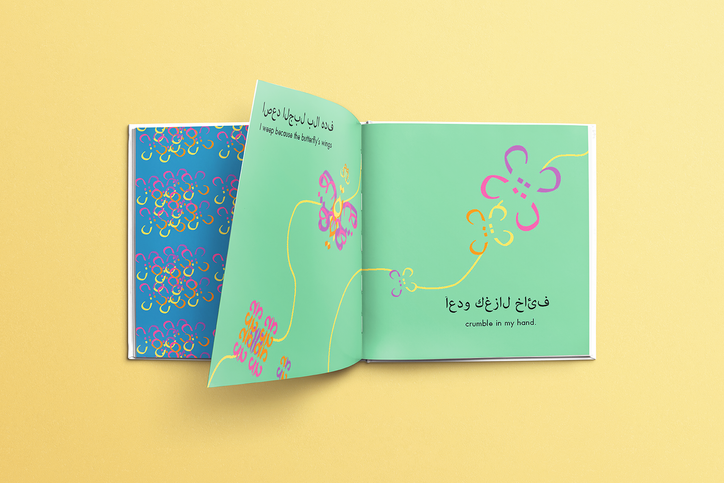 Objective: Focus on the typography characters and create animals, insects or clouds mentioned in the poem. It reminded me of a children's book where I centered the design of branding in bright colors, connecting the character shapes to form different animals.